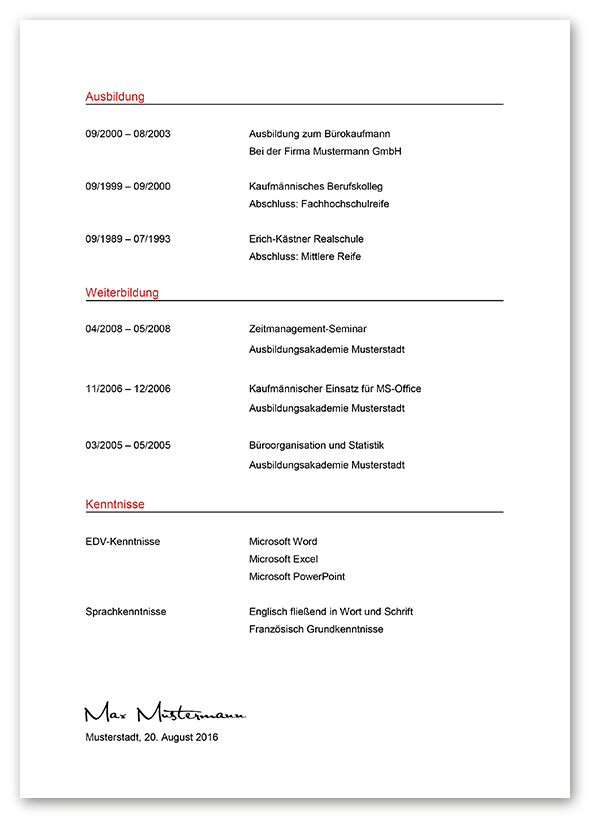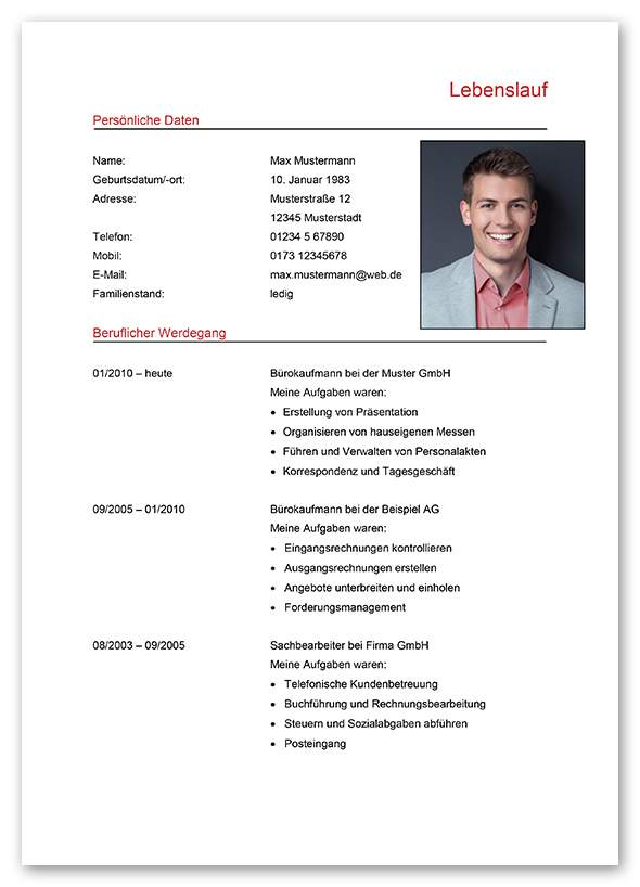 Lebenslauf ist fertig formatiert